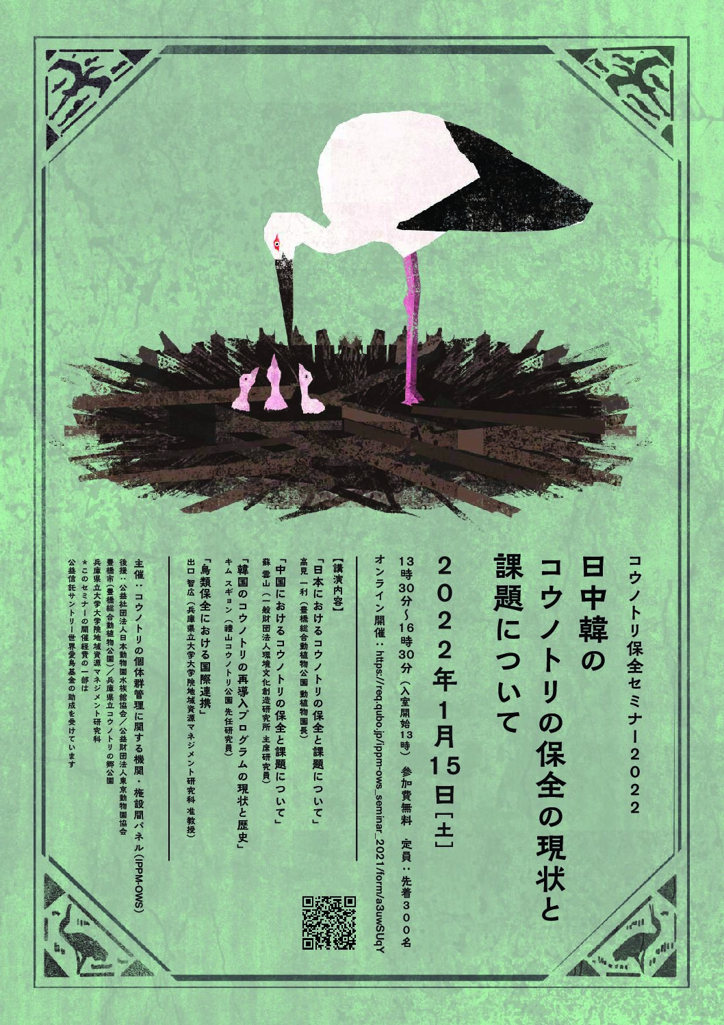2023年1月22日(日)に開催いたしました。「コウノトリ保全セミナー2023~コウノトリ保全活動の最前線!~再導入個体群の管理と課題」の動画を期間限定で配信いたします!